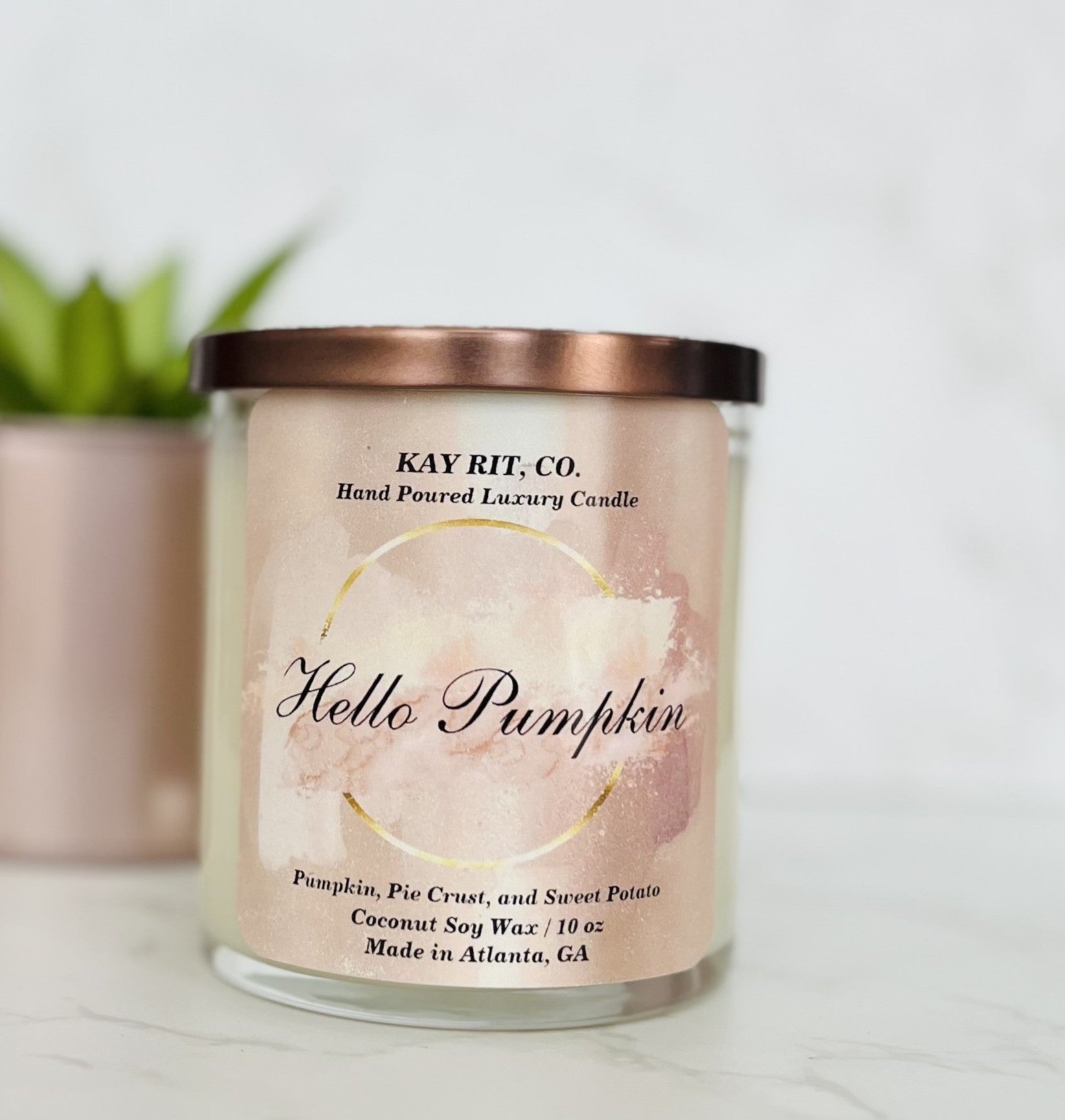 Welcome fall with "Hello Pumpkin," a playful candle that blends the fluffy sweetness of a souffle, the cozy spices of pumpkin pie, and the creamy warmth of a sweet potato latte. Perfect for filling your space with the joyful scents of autumn!